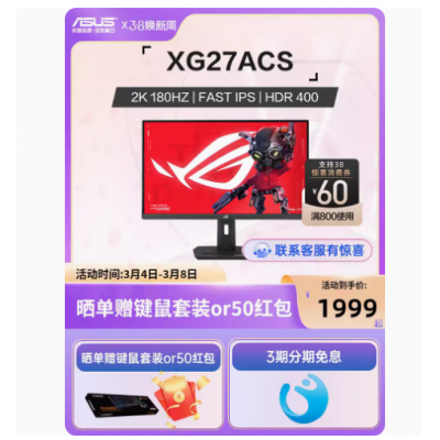 首页 > 数码 > 电子产品 > ROG XG27ACS绝杀27青春版 显示器电竞180Hz 27英寸2k显示屏幕电脑